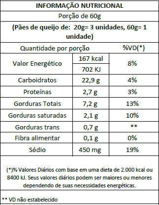 Amido de mandioca, polvilho azedo, amido modificado, queijos, óleo de soja, margarina, ovos, leite, sal e condimento sabor queijo. ALÉRGICOS: CONTÉM OVOS, DERIVADOS DE SOJA E DERIVADOS DE LEITE.