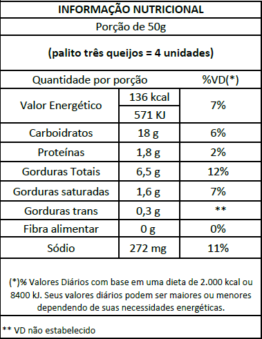 O Palito três queijos Chef Foods nunca deve ser recongelado
